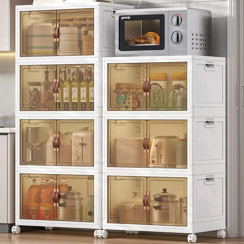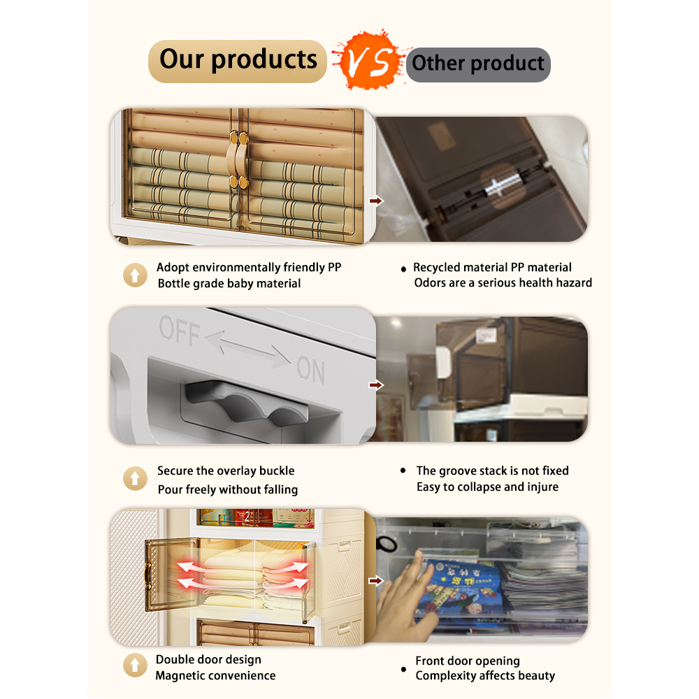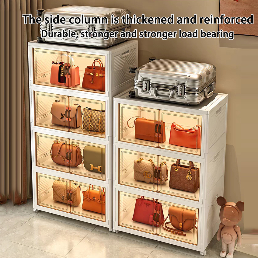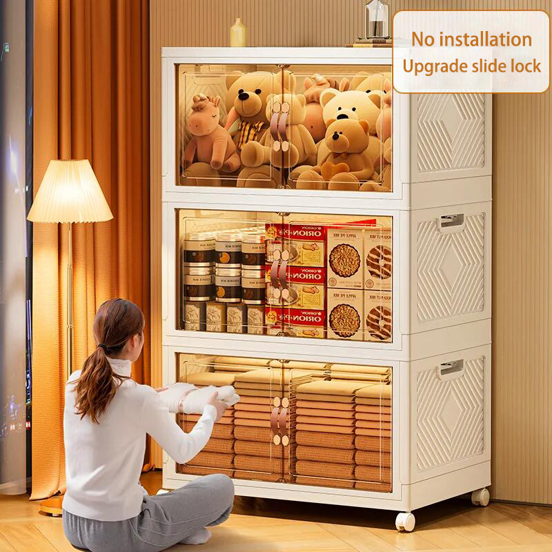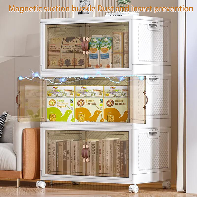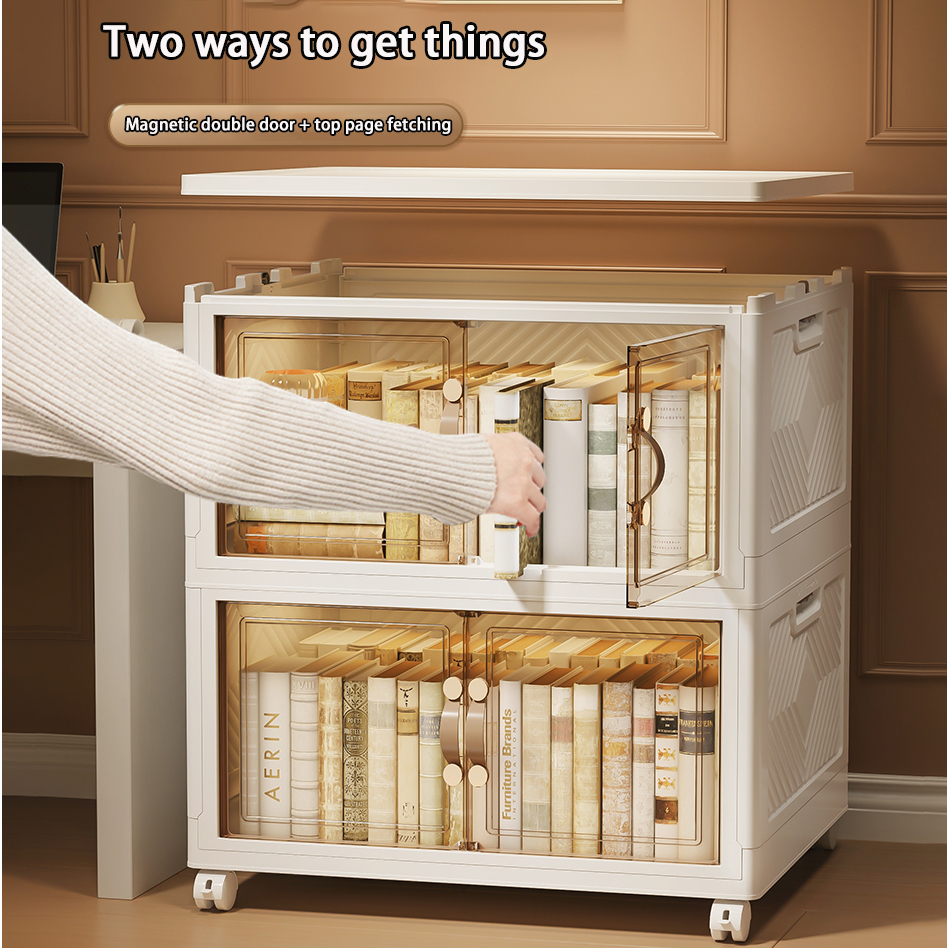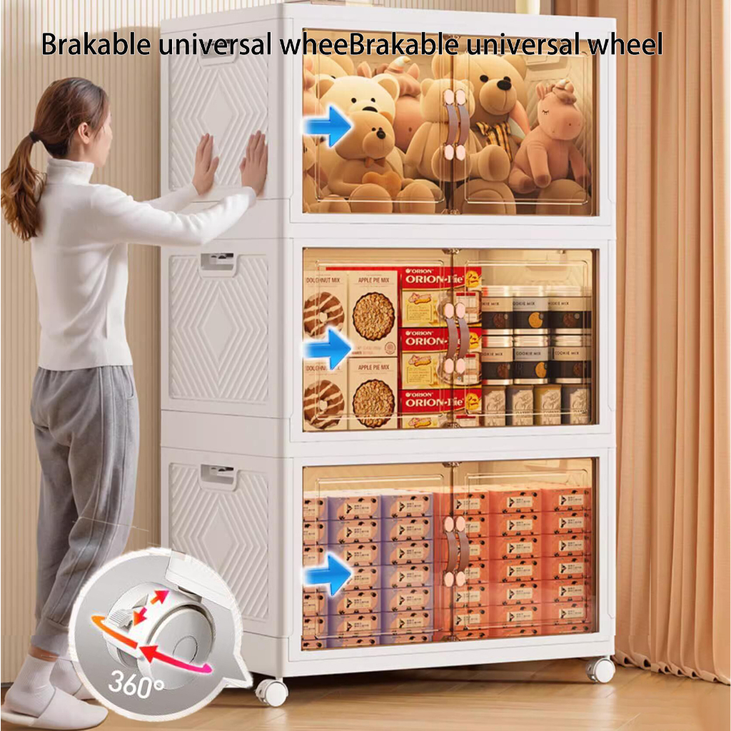 【SG Stock】Folding Storage Box Wardrobe Transparent Double Door Foldable Home Clothes Snacks Storage Cabinet