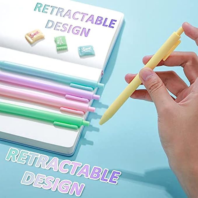 100 Pieces Retractable Gel Ink Pens Black Ink Cute Pens 0.5mm Fine Point Writing Pens Pastel Pens Cute Pens Office Supplies for Writing Journaling Taking Notes School Office