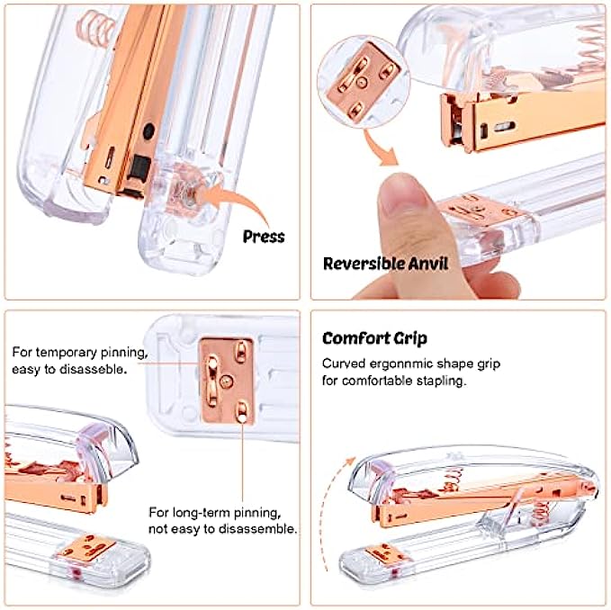 • Quantity Material: the body of the clear stapler is made of ABS and stainless steel, which fits for the standard staples 24/6 or 26/6, are sturdy to use and not easy to deform; The binder clips and diamond ballpoint pens are anti rust and impact resistant, so they can serve you for a long time