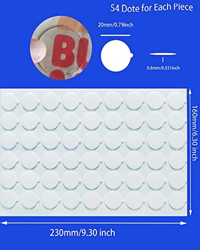 Applicable Scene --- The circle adhesive double sided can be pasted on glass, metal, tile, ceramic, paper, wood, steel, plastic, clothes, etc., and easy to replace, Clear Sticky Putty can partially replace nails, pushpins, staples function of the device, when using, please keep the sticking surface clean and dry