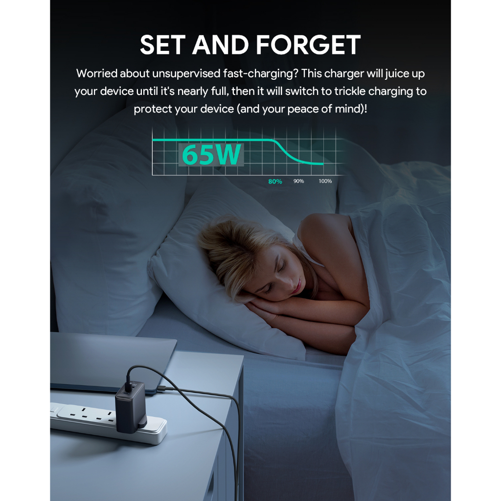 Aukey PA-B6T Omnia II 3-Port 65w PD & Super Fast Charging (PPS) Wall Charger w GaN Power Technology (24 Months Warranty)