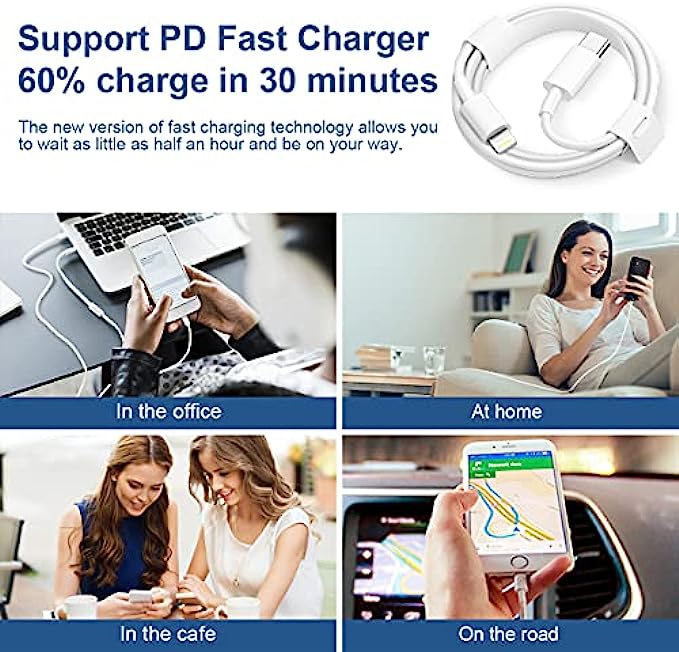 【Wide Compatibility】- USB C to Lightning Cable Perfectly compatible with iPhone 13/ 13 Mini/ 13 Pro/ 13 Pro Max/ iPhone 12/ 12 Mini/ 12 Pro/ 12 Pro Max/ 11/ 11 Pro/ 11 Pro Max/ iPhone XS / XS Max / iPhone X/ XR/ iPhone 8/ 8 Plus/ iPhone 7 / 7 Plus/ iPhone 6/ 6s / 6 Plus /6s Plus/ iPhone 5s / 5c / 5 / SE, iPad, iPod