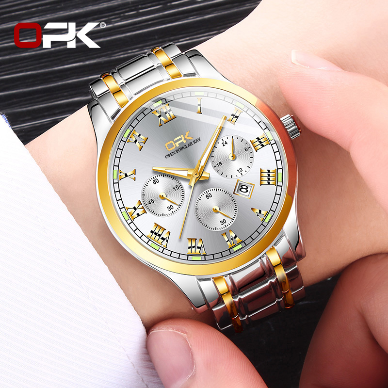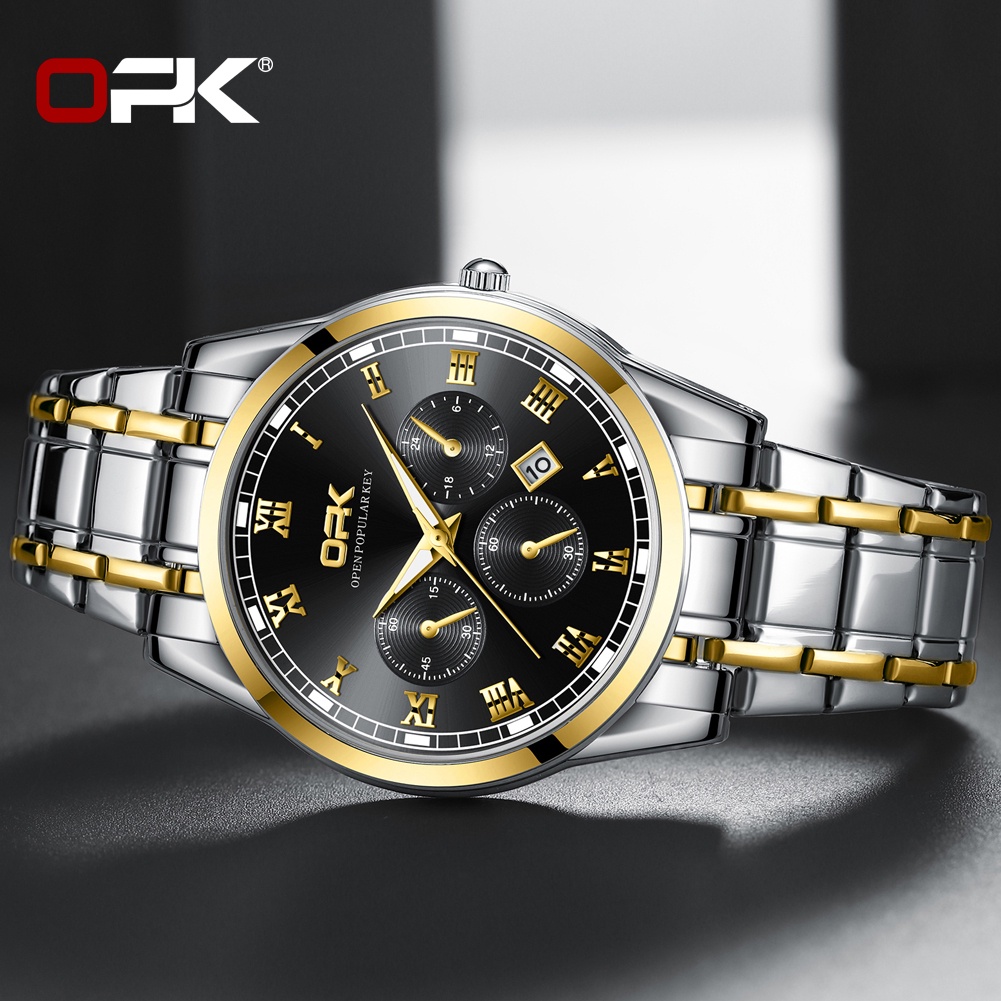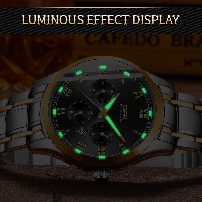 OPK Men Watch Waterproof Seiko Stainless Steel Black Luxury Watchs