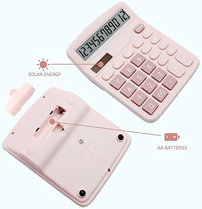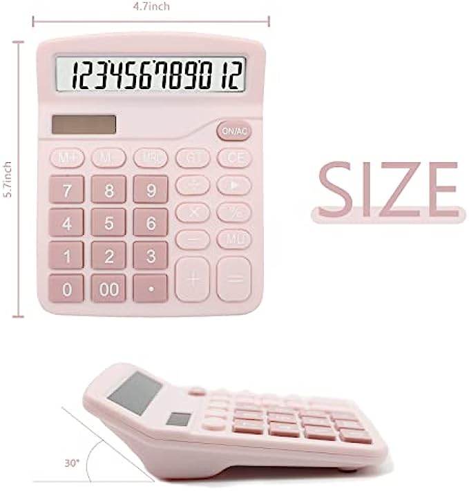 Pink Calculator, UPIHO Basic Office Calculator, Desktop Calculator 12 Digit with Large LCD Display for Pink Office Supplies with Sensitive Button, Pink Office Supplies, School Supplies for Teen Girls
